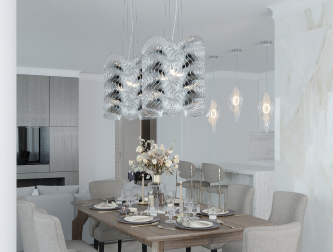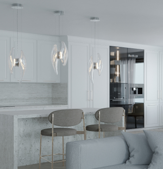Начиная от легких подсветок, продолжая основным освещением и подвесными светильниками - арт-объектами
