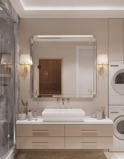 В данном проекте последние технологические новинки и решения внедрены в строгий классический интерьер
