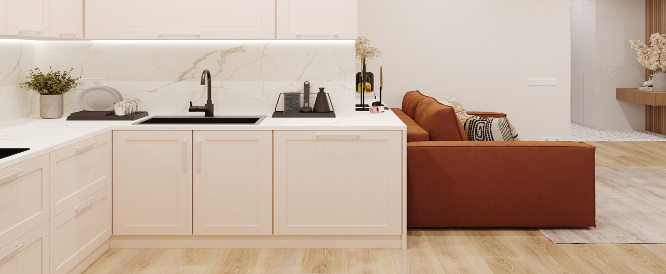 Для молодых хозяев данной квартиры было важно организовать максимально светлое пространство с использованием ненавязчивых цветовых акцентов и национальных мотивов