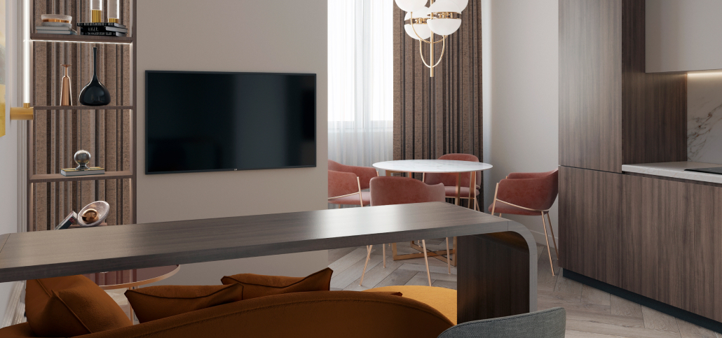 Основной акцент в данном проекте мы приняли решение сделать на мебели и качественных материалах
